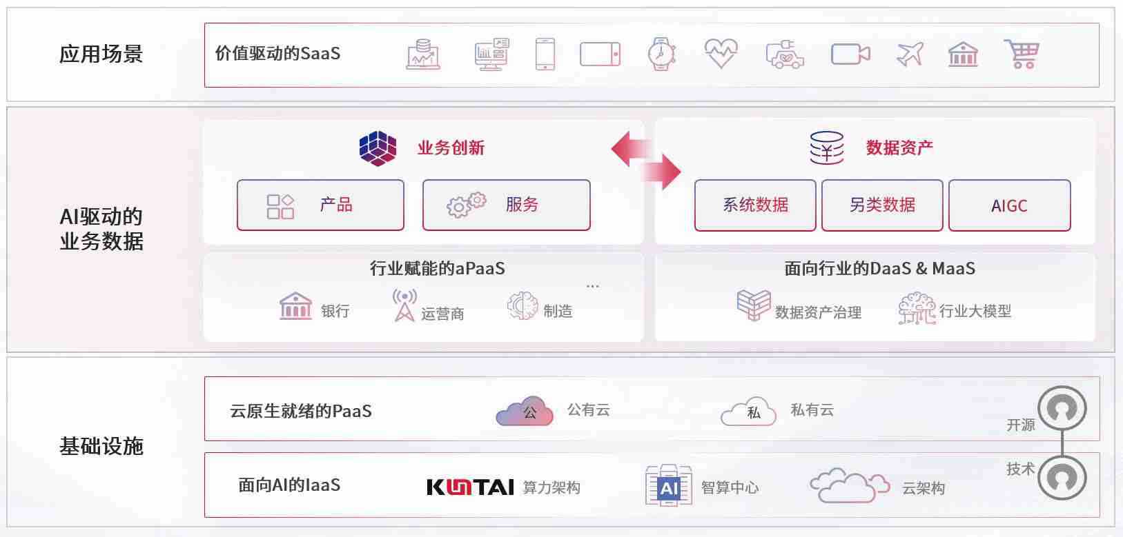 数字时代,,,,围绕企业数字化转型的关键要素,,意昂2数码开创性的提出数云融合战略和技术体系框架,,着力在云原生、、、、数字原生、、、AI原生和信创产业上架构产品和服务能力,,,为处在不同数字化转型阶段的快消零售、、、汽车、、、、金融、、医疗、、政企、、、、教育、、、、运营商等行业客户提供泛在的敏捷IT能力和融合的数据驱动能力,,,构建跨界融合创新的数字业务场景和新业务模式,,,,助力企业级客户建立面向未来的核心能力和竞争优势,,,,全面推动社会的数字化、、、、智能化转型升级。。